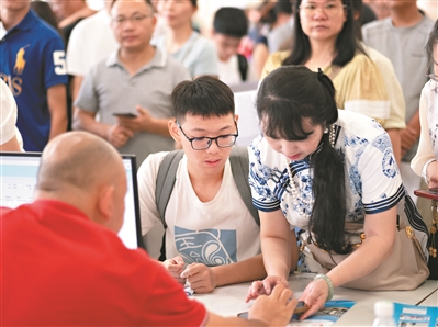 昨日,在广州市轻工职业学校科教城校区,不少家长带着新生进行入学注册。图/广州日报全媒体记者庄小龙