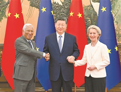 二是坚持开放合作,妥善处理分歧摩擦。历史和现实证明,相互依赖不是风险,利益交融不是威胁,提升竞争力不能靠“筑墙设垒”,“脱钩断链”只会孤立自己。“降依赖”不能减合作。中欧经贸关系的本质是优势互补、互利共赢,应该也完全能够在发展中实现动态平衡。中国高质量发展、高水平对外开放将为中欧合作提供新机遇、拓展新空间。中欧要深化绿色和数字伙伴关系,促进相互投资合作。希望欧方保持贸易和投资市场开放,克制使用限制性经贸工具,为中国企业赴欧投资兴业提供良好营商环境。