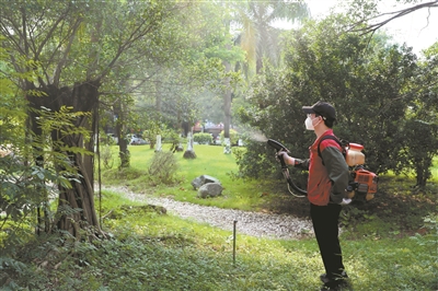 工作人员正在进行药物喷洒。广州日报全媒体记者杨耀烨 通讯员李剑锋 摄