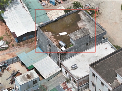 ②建筑物屋顶积水被无人机“捕获”。(通讯员鹤轩摄)