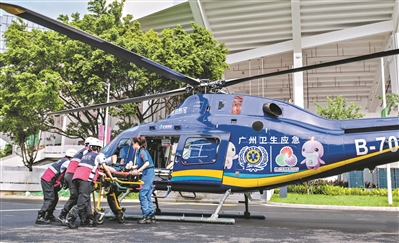 演练中“重伤员”由直升机紧急空运。广州日报全媒体记者廖雪明 摄