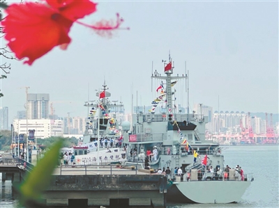 今年4月23日至26日,为庆祝中国人民解放军海军成立76周年,广州地区舰艇开放活动如约而至,恰逢广州荣膺全国双拥模范城“十连冠”之际,海军导弹护卫舰“阿坝舰”和猎扫雷舰“赤壁舰”劈波斩浪而来,靠泊新洲码头,迎来一批又一批热情的市民群众。