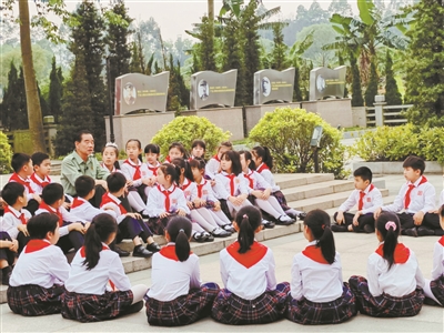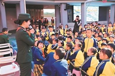 来穗荣誉疗养的戍边官兵代表走进广州校园,为小学生带来别开生面的国防教育课。