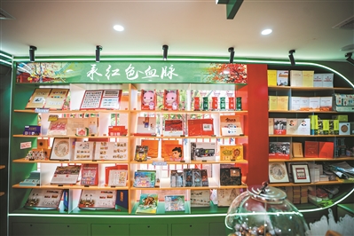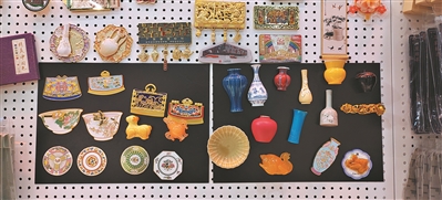 为了更好地招揽顾客,一些博物馆在文创商店的名字和设计上颇花心思。南越王博物院在王墓展区主体陈列楼里安排了“玥明珠文创空间”,古朴木质色调、中国红花窗、鱼鳞状造型墙面、山水吊灯、国潮花艺……轻中式风格勾勒出兼具质感与腔调的空间,配合珠串、配饰等大气、沉稳的文创品类。“小赵的奇妙屋”快闪店则位于王墓展区主体陈列楼“南越藏珍”展览尾厅处,“二次元”风格的产品不少。“越美”文创店位于王墓展区一楼,在里面能找到多款馆方开发的经典文创。
