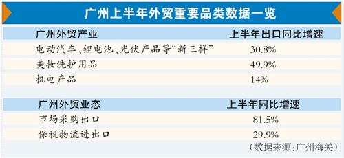 烈日炙烤的非洲街头,万宝冰箱的直流冷柜正用蓄电池供电输出低温;米兰展厅里,广汽AION UT的智能座舱吸引西欧媒体驻足体验;美湾基地的AGV机器人穿梭于化妆品自动化产线……今年上半年,广州外贸交出历史性答卷——进出口总额6050.5亿元,同比(下同)增长15.5%,对全国、广东外贸增长贡献率分别达13.1%和46.7%;出口总额3969.1亿元,激增25.2%;在连续13个月增长的曲线中,广州外贸规模已经连续两个季度保持10%以上的增长,二季度出口更是创下季度历史最高值。