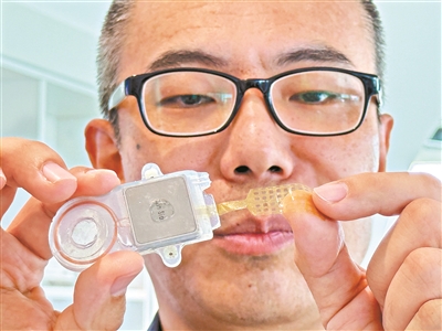 李骁健向记者展示超薄膜贴片。