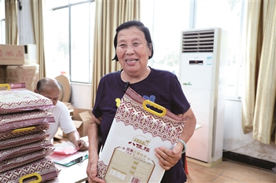 横沥镇村尾村防蚊措施达标的村民领到了大米。广州日报全媒体记者葛宇飞 通讯员吴婉珊、周柱宁摄