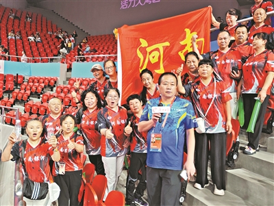 8月10日,十五运会群众比赛乒乓球项目决赛在广州天河体育馆结束男女团半决赛的争夺。记者发现,看台上气氛热烈,100余名身着统一红色助威服的河南助威团成为最亮丽的风景。