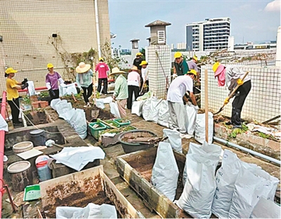 丽的花园小区物业公司凯丰达物业管理有限公司负责人张冰介绍,夏季天气炎热多雨,公司已从其他项目抽调二十余人支援丽的花园小区开展天台环境清理整治行动,争取两日内全部清理装袋后,安排吊车入场,赶在台风暴雨天气前完成清运。该公司始终将业主居住安全和健康放在首位,投入大量资源,全面落实政府关于蚊媒传染病防控工作要求,包括采购防疫物资,做好防蚊灭蚊宣传引导,强化小区全域消杀等。张冰说,只要物业和业主心往一处想、劲往一处使,把每一个细节都做到位,就一定能守好小区的健康防线。