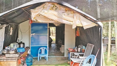 清新区“80”后的陈志军,便是众多养蜂人中的典型代表。以前他曾是一名果农,养蜂只是他的爱好,十年前,在朋友的引领下,他踏入了养蜂这一行业。如今,他的养蜂场已成为龙颈镇规模最大的蜂场,高峰期拥有400多箱蜜蜂,年产蜂蜜上万斤。常年跟着蜜源走,风餐露宿是蜂农的生活常态。“养蜂这些年,我们过了年就会搬去广州,五月份搬回清新采乌桕和百花蜜,八月搬上连州去采五味子和钩藤蜜,十月再回来清新采冬蜜。”饱经风霜的肤色,常年的野外生活锤炼,令个子不高的陈志军显得精干而灵活,繁重而艰苦的工作并没有压垮他的瘦小身躯。