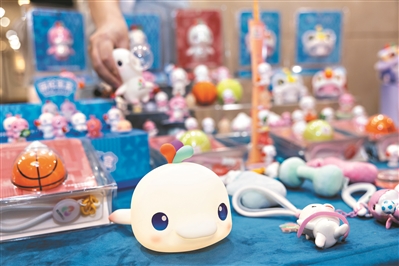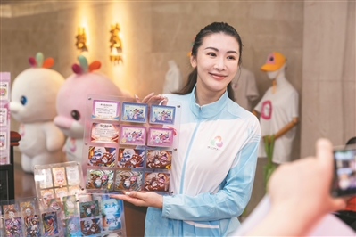 嘉宾手持十五运会文创周边产品拍照打卡。