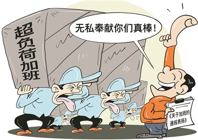 近日,某电商公司一份《关于加班的通报表扬》引发热议。在这份通报表扬中,最高加班时长达到159.96小时,最低也有68.41小时,公司还在结尾部分号召全体员工以他们为榜样。把无知当无私,将剥削当奉献,这样另类的“表扬”,实在让人汗颜。超负荷加班,有什么好表扬的?倒是加班过程中是否涉嫌违反劳动法,要好好查查。虽说劳动者自觉维权很重要,但要刹住加班文化这股歪风,始终离不开监管发力。对这类“变相强制加班”还招摇过市的行为,该出手时就出手。在当前“反内卷”浪潮下,就该拿它来杀鸡儆猴!