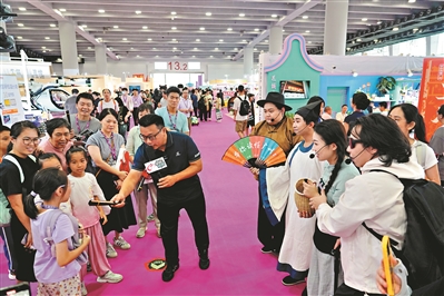 8月15日,2025南国书香节在中国进出口商品交易会展馆B区启幕。“老城市新活力”丛书之《带你读懂广州》书系携沉浸式互动话剧《五脉同堂》亮相这场阅读盛会,带领现场观众与读者体会五脉交织的名城气象。