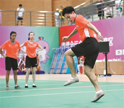 广东毽球队在比赛中。图/广州日报全媒体记者周婉琪