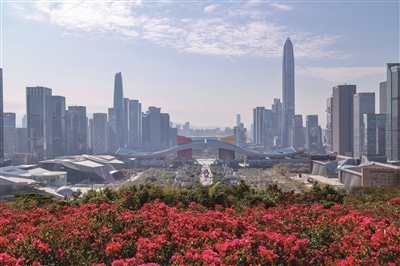 从深圳莲花山山顶俯瞰城市中轴线。 新华社发