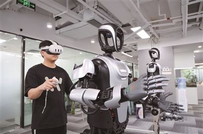 在深圳一家机器人企业,技术人员在调试人形机器人。 新华社发