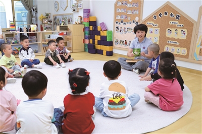 在深圳市南山区教育幼儿园深圳湾分部开设的托班,老师与孩子们互动。 新华社发