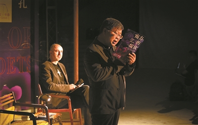 著名诗人高兴(右)与东欧新一代诗人代表尼古拉·马兹洛夫(左)登台朗诵。