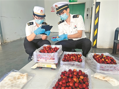 经从化海关关员现场检疫合格后,一箱箱荔枝搭乘航班飞往世界各地。
