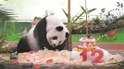 广州日报讯 (全媒体记者叶卡斯 通讯员陈可心摄影报道)昨日,广州动物园以全运会为主题,为大熊猫“星一”“雅一”举办了一场温馨的12岁生日会。
