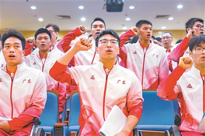 广东代表团百日誓师,提振士气。广州日报全媒体记者吴子良摄