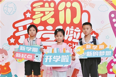 石碣镇中心小学,孩子们在校园的“成长打卡点”前驻足,定格开学第一天的美好瞬间。