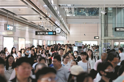 邻近热门景点的地铁站暑运客流增长显著。广州日报全媒体记者骆昌威 摄
