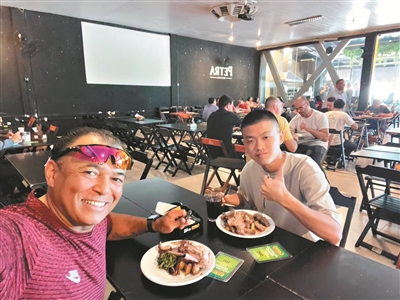 何塞带小轩到巴西参训期间一起品尝美食。(受访者供图)