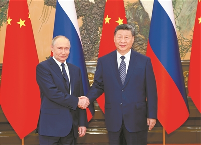 习近平指出,中俄两国元首相互出席对方国家举办的纪念世界反法西斯战争胜利庆典,充分彰显了作为第二次世界大战主要战胜国和联合国安理会常任理事国的大国担当,展示了维护二战胜利成果、捍卫正确二战史观的坚定决心。我提出全球治理倡议,就是要会同所有志同道合国家,坚定捍卫联合国宪章宗旨和原则,推动建设更加公正合理的全球治理体系。中俄两国都强调主权平等、国际法治、多边主义,要继续在联合国、上海合作组织、金砖国家、二十国集团等多边平台加强协作,携手推动构建人类命运共同体。