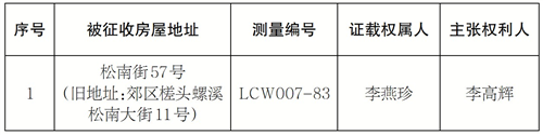 为进一步规范房屋征收补偿工作程序,保障被征收房屋权利人权益,广州市白云区人民政府松洲街道办事处在2025年8月22日公告要求下表房屋权利人限期申报权利,现将公告期内收到的权利主张情况公示如下,公示期为三天(2025年9月3日-2025年9月5日)。欢迎广大群众和知情人士对此公示内容进行监督举报(地址:广东省广州市白云区松洲街道增槎路383号,联系人:高先生,联系电话:19928382290)。