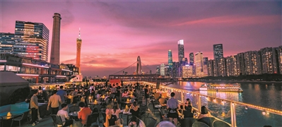夜幕降临,珠江琶醍露台热闹非凡,呈现消费新活力。(资料图片)