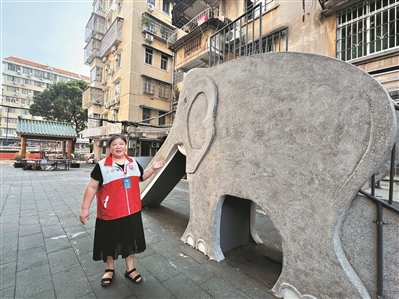 紧邻仲恺农业大学的这片楼房有200多户居民(含城中村郭村),这里不仅没有物业管理,甚至连小区名称都没有,最显著的“地标”就是楼房前20世纪80年代建成的水磨石大笨象造型滑梯,自治管理小组广泛征求民意,选定了“大笨象小区”这个名字。