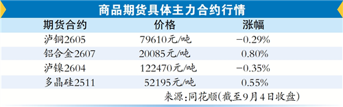 广州日报讯 (文/表 全媒体记者 谭伟婷)近期,记者留意到, 国内有色金属期货市场呈现涨势。国内工业金属包括铜、铝、镍,新能源金属包括多晶硅,小金属包括稀土的涨势也开始呈现。以9月2日为例,沪铜主力合约价格报79780.00元/吨,较上一交易日上涨560.00元,涨幅0.71%。