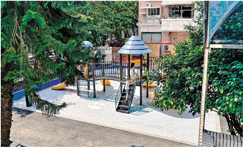 此外,小区里休闲活动空间的翻新同样让居民们喜上眉梢。地面软层严重老化、杂草丛生,曾经破旧的小花园如今成了老少咸宜的“会客厅”——健身器材、儿童游乐区、科普文化墙等一应俱全,原本的水泥路面也更换为更加环保、安全的橡胶路面,老人们在这里晒太阳、聊天,小孩们在游乐区尽情玩耍,真正实现从“住有所居”到“住有宜居”的转变。