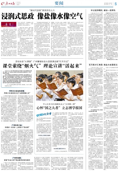 9月5日,《广州日报》刊发评论《气象万千的中国就是大课堂》,阐释了以广阔社会为载体开展思政教育的重要意义,引发广泛关注与思考。