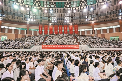 广州日报讯 (全媒体记者曾俊 通讯员广中宣摄影报道)9月8日,广州中医药大学(以下简称“广中医”)2025级新生开学典礼暨党委书记“思政第一课”在大学城校区体育馆举行。