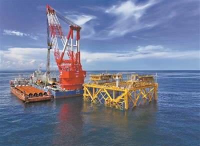 国家电投广东公司揭阳海洋牧场“龙宫号”在揭阳神泉海域安装就位。