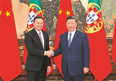 习近平指出,中国和葡萄牙都是历史底蕴深厚的国家,两国人民都拥有开放包容、进取自主的精神特质。双方通过友好协商妥善解决了澳门问题。近年来各领域合作取得重要成果,树立了不同社会制度、不同国情国家相互尊重、互利共赢的典范。今年是中葡建立全面战略伙伴关系20周年。中方愿同葡方加强战略沟通,把握双边关系正确方向,让中葡关系好上加好,以团结合作为两国和世界繁荣进步作出更大贡献。双方要赓续传统友好,相互信任、相互支持。深化发展战略对接,拓展创新、绿色、海洋、医药等领域务实合作,发挥澳门独特桥梁作用,用好中国—葡语国家经贸合作论坛等机制,实现更高水平互利共赢。鼓励文化、教育、旅游、科研领域交往,深化人文交流。国际形势越是变乱交织,中欧越要加强沟通、增进互信、深化合作。希望葡方同中方一道,坚持中欧伙伴关系定位,推动中欧关系持续稳定健康发展。