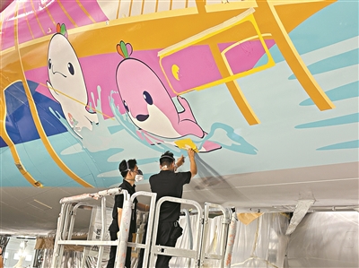 广州日报讯 (全媒体记者李妍 通讯员南宣)昨日,中国南方航空(以下简称“南航”)举办“全运擎·工匠心”主题喷漆探营暨第二届中国民航机务维修岗位职业技能大赛预热活动。媒体记者代表走进南航旗下广州飞机维修工程有限公司的喷漆机库,近距离探秘十五运会主题彩绘飞机“活力湾区”号的喷绘过程。眼前庞大的空客A350机身如同一幅画卷,工匠们手持喷枪精细勾勒,港珠澳大桥、自由畅游的十五运吉祥物“喜洋洋”和“乐融融”已基本成形,共同见证三万英尺高空中“大湾区体育名片”的诞生。“活力湾区”号彩绘飞机即将完工,计划于9月19日首航,并执飞广州—北京、广州—上海浦东、广州—杭州、深圳—北京、深圳—上海等航线。