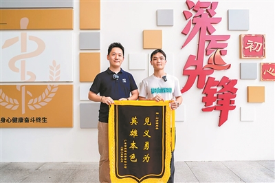 9月16日,事发球场所属的广东省燕塘投资有限公司公寓事业部党支部书记张扬特意带队从广州来到深圳大学,为刘清辉和深圳大学医学部送上两面锦旗。“一面锦旗是对刘同学的赞许,另一面是感谢深圳大学医学部对学生的教导。”张扬表示。张扬还透露,低调内敛的刘清辉同学甚至不太愿意透露自己的姓名,觉得“人救过来就好”。