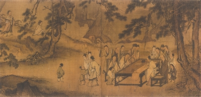 南宋马远作品《西园雅集图》(局部),文人雅集,一人作画,众人旁观,姿态各异,画案上香炉里焚着香,十分风雅。 (CFP供图)