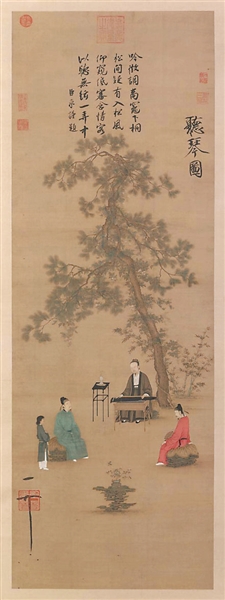 画中琴案旁有一几,几上置熏炉,香烟袅袅,与琴声一道,营造出一种清幽的氛围。
