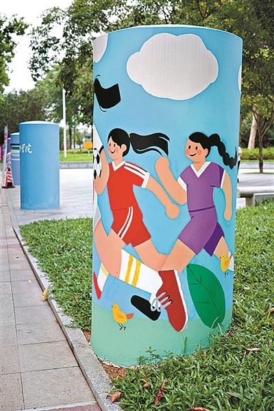 手绘“彩墩墩”传递运动欢乐。广州日报全媒体记者莫伟浓 摄