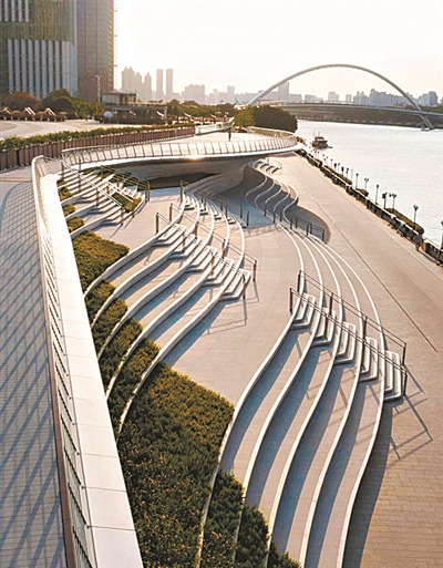 广州日报讯 (全媒体记者李天研)记者昨日获悉,阅江路(广州大道—猎德大道)品质提升项目即将开放,打造一条可漫步、可休憩、可沉浸的滨水长廊,成为广州城市品质提升的生动缩影。届时,广州塔大台阶、横跨黄埔涌的步行桥将正式迎客,给市民提供打卡新中轴线、赏塔映珠江、夜跑散步的新去处。