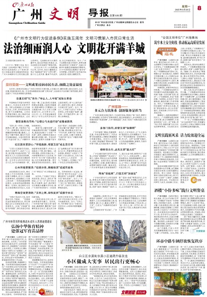 广州在《条例》实施过程中,立足城市实际,探索出“部门协同、榜样引领、阵地赋能、全民参与”的特色路径,通过多维度发力、多主体联动,让文明建设既有“制度保障”,又有“情感温度”,形成了具有广州辨识度的文明创建模式。