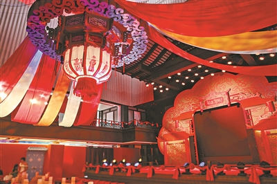 第三步,演艺空间“剧情化”。曲艺园古色古香,“金枝席”观众先会进入公主的“闺房”和她聊天,然后再移步到婚礼主会场。而在婚礼进行中,某个“闺房”的门会突然打开推动剧情……几乎360度的环绕式体验,让观众走进来的那一刻,就已经是戏中人。