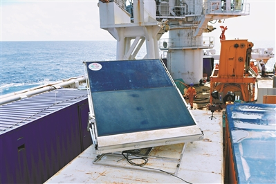● 科考船甲板面的太阳能光伏装置发电传输至“可燃冰原位采集分解及引燃装置”。