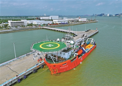① 2025年9月16日上午,承担“源火”采集任务的“海洋地质二号”科考船在广州市南沙科考码头启航。