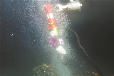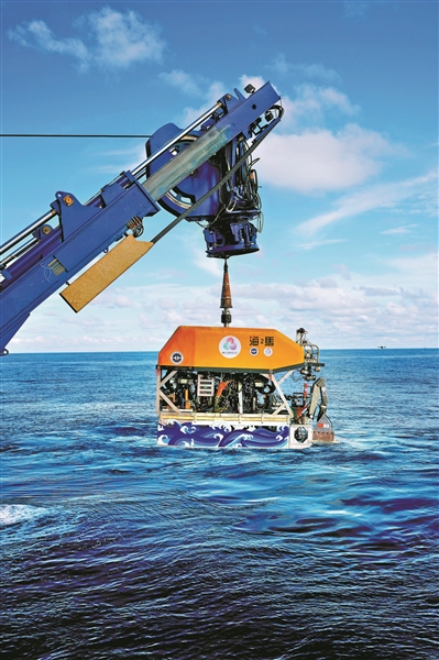 ● 14时26分,由广州海洋地质调查局牵头自主研发的“海马”号4500米级深海遥控潜水器(ROV)搭载“可燃冰原位采集分解及引燃装置”下潜。