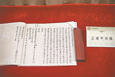 现场展示的丘逢甲手稿。广州日报全媒体记者王维宣摄